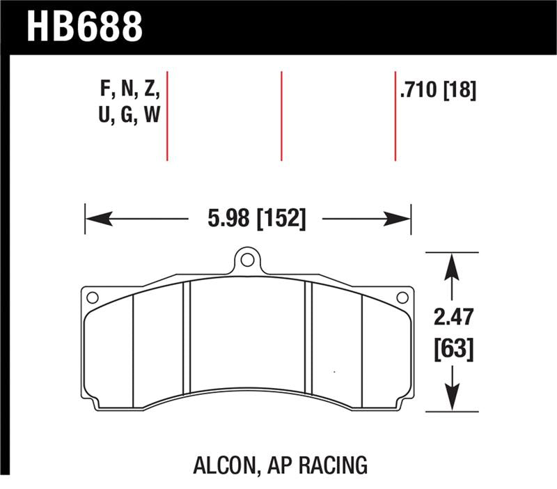 Hawk AP Racing/Alcon Performance Ceramic Racing Front Brake Pads w/0.710in Thickness