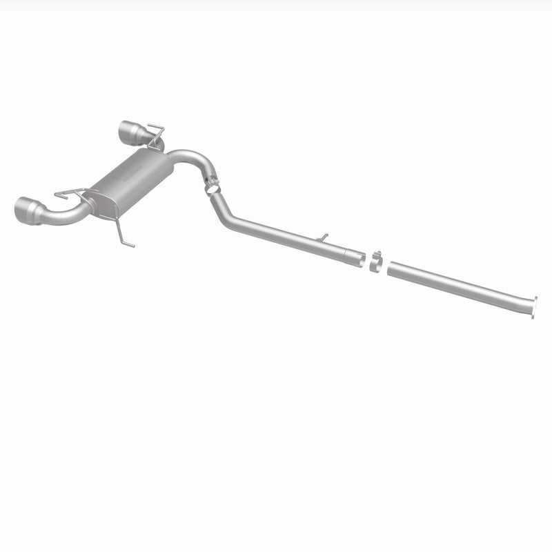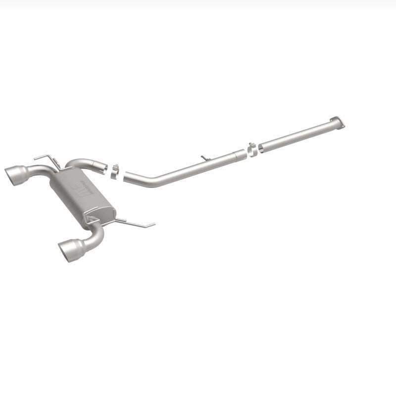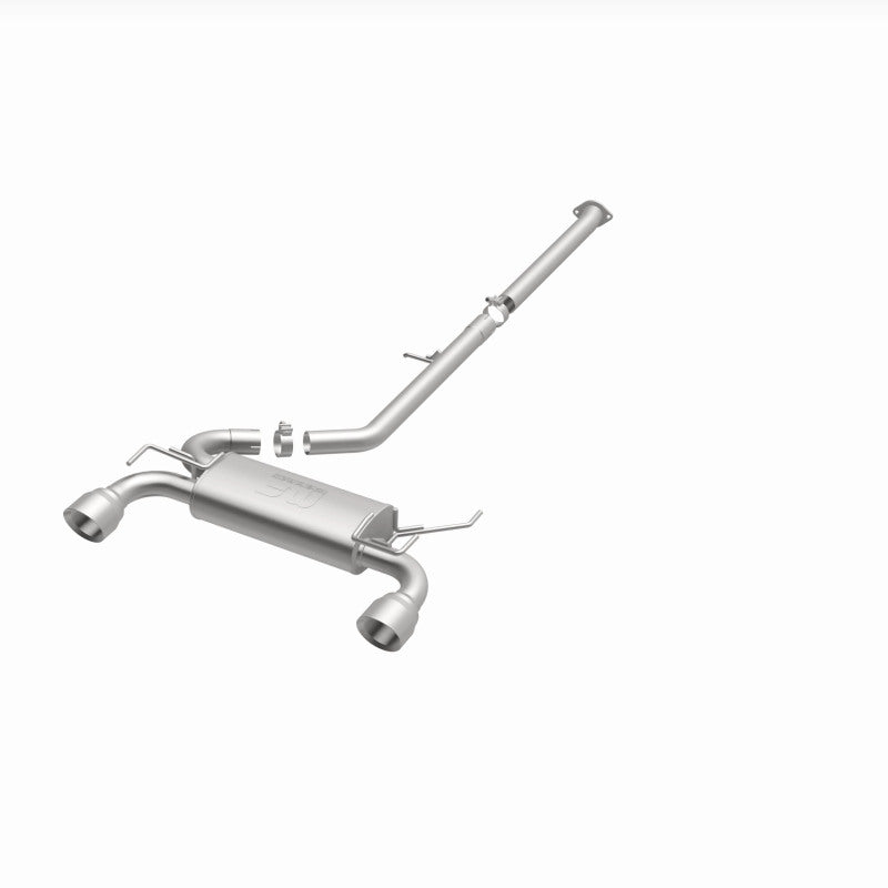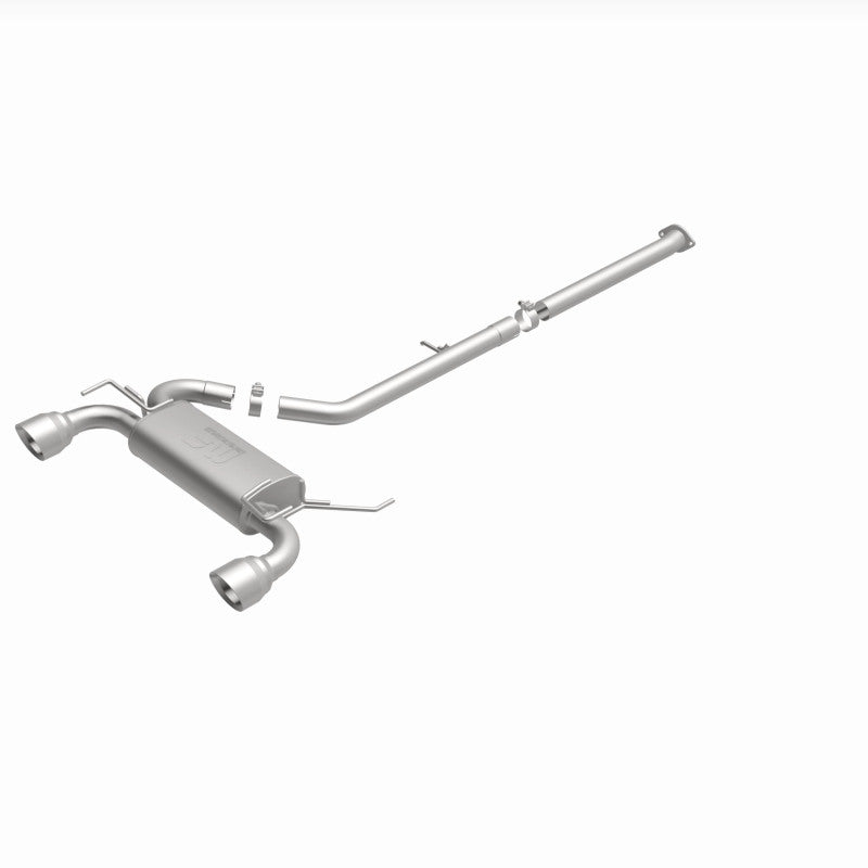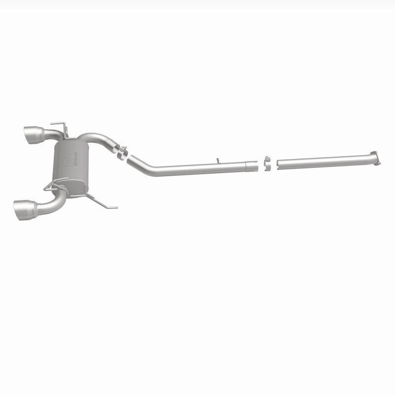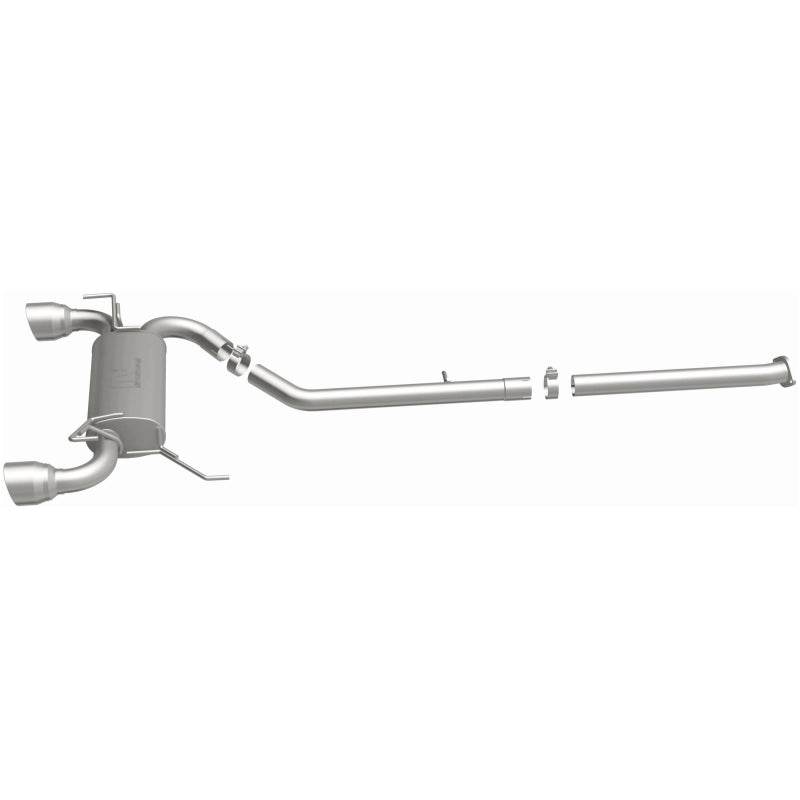 The MagnaFlow 2003-2009 Nissan 350Z Street Series Cat-Back Performance Exhaust System 19342 brings out the personality of your 3.5L 2003-2009 Nissan 350Z with our signature resonant, powerful engine tone and dyno-proven performance. Thanks to its fast-flowing, mandrel bent 2.5in. main piping and 1 Straight-Through mufflers ending in a Dual Split Rear exit with 4.5in. Polished Welded-On Double Wall Angle Cut Folded Edge tips, this Nissan 350Z exhaust kit has the performance chops to match its sporty sound and appearance. Upgrade your ride to the next level with an exhaust that has the pipes to put other Nissan 350Z's to shame. With this system your vehicle will be producing Moderate exterior and Mild interior sound levels while leaving other cars and trucks feeling envious at every stoplight. Exhaust kit 19342 features a cat-back layout that replaces your ride's stock exhaust components from near the catalytic converter on back. Extensive 3D scanning during development has resulted in a direct-fit design that you can easily install yourself. 19342 is produced using CNC precision robotic manufacturing techniques and is backed by MagnaFlow's 1-year limited finish warranty and limited lifetime construction warranty.