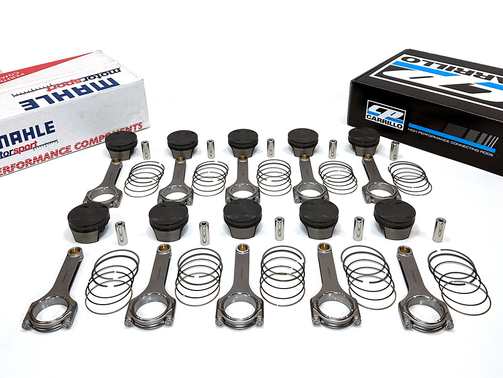 The ETS Lamborghini Huracan/Audi R8 Piston and Rod Combo is designed to be used with a factory block without sleeves. This combo is capable of supporting over 2000whp! We spec'd our pistons out at 11:1 C/R.